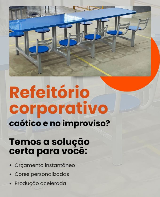 Na Sique Móveis, somos especialistas em mesas para refeitórios funcionais e duráveis para espaços industriais e corporativos, unindo conforto, resistência e design inteligente.